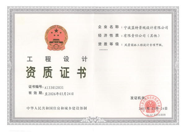 風(fēng)景園林工程設計專(zhuān)項甲級資質(zhì)